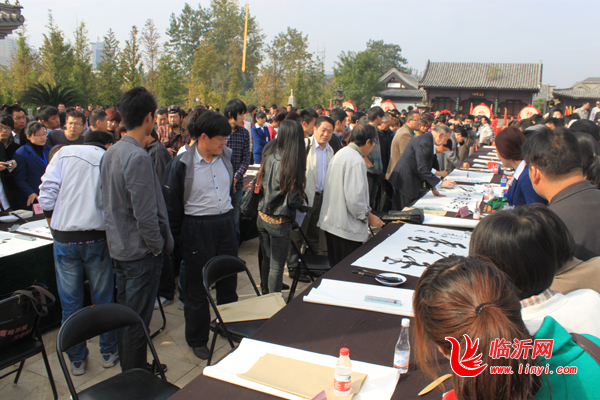 开幕式后,来自全国48位书法名家共同挥毫泼墨,参加了洗砚池雅集笔会,书法家们精湛的书法技艺和一幅幅飘着墨香的作品让围观的市民大开眼界。开幕式当天,还分别举行临沂市第六届书法创作与临帖大展和山东书法名家青花瓷书法作品展。独具书法韵味的展览吸引了大批市民和书法爱好者参观学习。