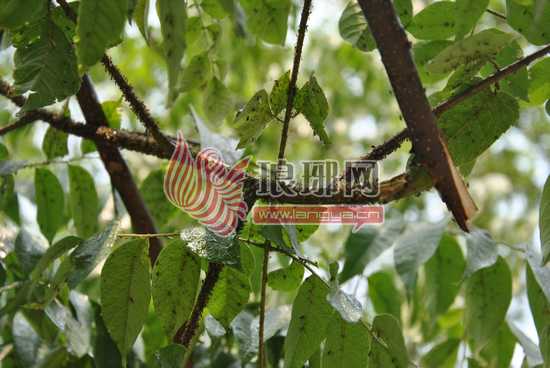 栾树枝干上布满了蚜虫。