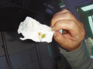 昨日,记者在互联网上查到“假鸭蛋”制作方法:“蛋清”是用海藻酸钠、明矾、明胶、食用氯化钙加水、色素等进行调配而成;“蛋黄”加柠檬黄色素、氯化钙混合倒入模具形成蛋形即可;而蛋壳先做模具,将树脂、滑石粉等搅拌后倒进模具里,反复摇晃。然后再用针管将做好的“蛋清”慢慢推进去,再推入“蛋黄”,然后再用“蛋清”充满。