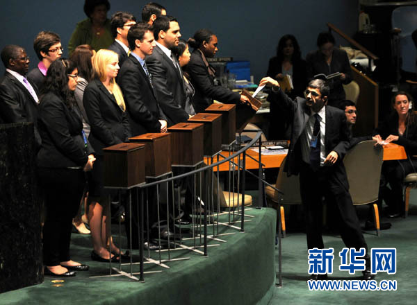 10月21日,在纽约联合国总部,巴基斯坦代表庆祝巴基斯坦当选安理会非常任理事国。当日,第66届联合国大会经过9轮不记名投票,选举摩洛哥、多哥、巴基斯坦和危地马拉4国为2012—2013年度安理会非常任理事国。第5个安理会非常任理事国的席位当天没有结果,投票将于24日继续进行。