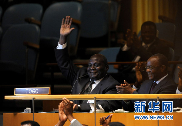10月21日,在纽约联合国总部,多哥代表庆祝多哥当选安理会非常任理事国。当日,第66届联合国大会经过9轮不记名投票,选举摩洛哥、多哥、巴基斯坦和危地马拉4国为2012—2013年度安理会非常任理事国。第5个安理会非常任理事国的席位当天没有结果,投票将于24日继续进行。