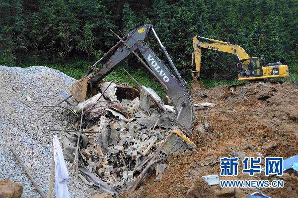 5月9日,挖掘机在清理广西全州山体滑坡事故现场。新华社发(刘杰 摄)