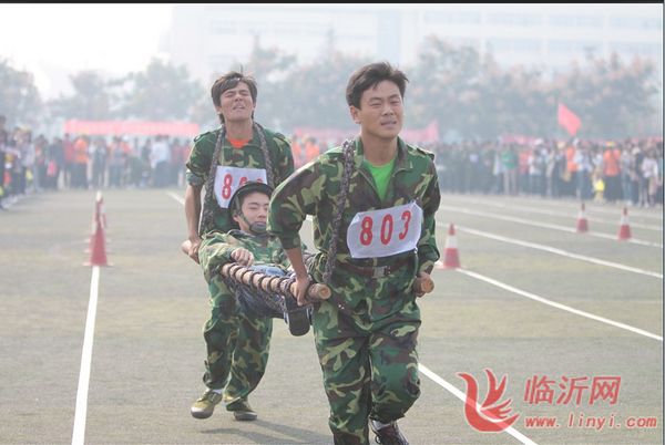 临大学子们在“沂蒙姐妹抢丰收”、“火线救伤员”、“全速冲锋”等红色运动项目中奋勇争先,昂扬的斗志,饱满的激情,展示沂蒙人民“更快、更高、更强”的体育精神。