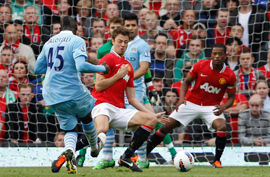 纳斯里替换阿圭罗出场。第77分钟,戴维-席尔瓦反击中传球,哲科禁区右侧10码处劲射被德赫亚用腿挡出。曼联第81分钟挽回颜面,弗莱彻同埃尔南德斯踢墙配合后20码处弧线球射入右上角,1-3。维尔贝克和里查兹相互犯规均被罚黄牌。第86分钟,弗莱彻传中,斯马林头球攻门偏出。2分钟后,纳斯里传球,亚亚-图雷禁区边缘内抽射偏出。