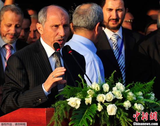 当地时间10月23日,利比亚执政当局“全国过渡委员会”在东部城市班加西宣布全国解放,并举行庆祝仪式。数以万计的民众聚集在班加西的Kish Square广场,庆祝当局宣布利比亚全国解放。图为全国过渡委员会”领导人穆斯塔法•阿卜杜勒•贾利勒出席庆典仪式。