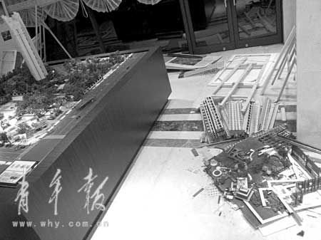 售楼处沙盘被扔地上