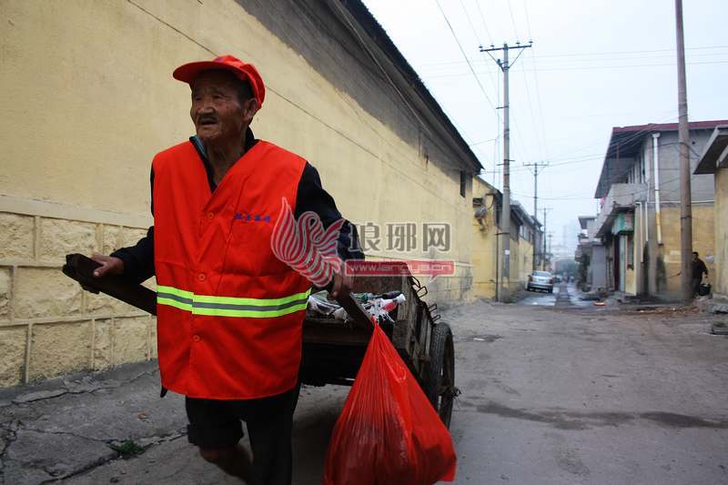 69岁的闫洪田拉着粪车,穿梭于三里庄社区