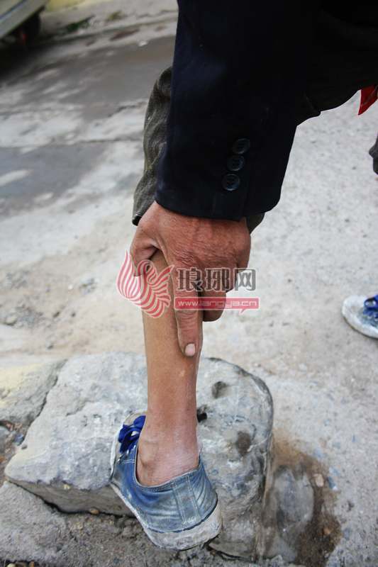进居民家被狗咬是常事,闫洪田指着左腿上的疤痕说