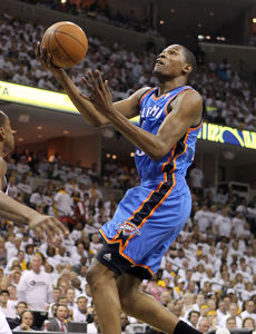 新浪体育讯 北京时间5月10日,雷霆苦战三加时后,客场以133-123力取灰熊,不但 将比分扳成2-2,同时抢回失去的主场优势。