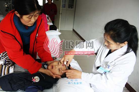 24日上午,在市人民医院南医疗区儿童康复科,记者见到王长梅正抱着儿子亮亮配合医生做针灸治疗。“如果不是那场车祸,我们一家四口是很幸福的。”王长梅告诉记者,她和丈夫宋洪利是河东人,10年前来到临沂,在市区王庄路摆了个水果摊卖水果。来临沂后,她和丈夫有了两个可爱的儿子,大儿子9岁,小儿子三岁。虽然收入不是很高,但是一家四口其乐融融。但发生在去年腊月二十九的那场车祸,将现实撕得粉碎。