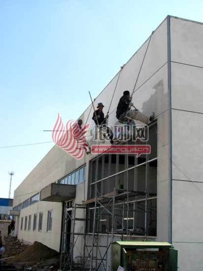记者在洽谈区看到,这里空间很大,地面已经平整,几名工人正在粉刷墙体。在1600平方米的餐厅里,几位工人正在铺水泥地面。“这以后就是咱农民工在外打工的家了,可得尽心尽力干,保质保量快点完工。”正在施工的孙大叔说着话,还不忘手中的活。
