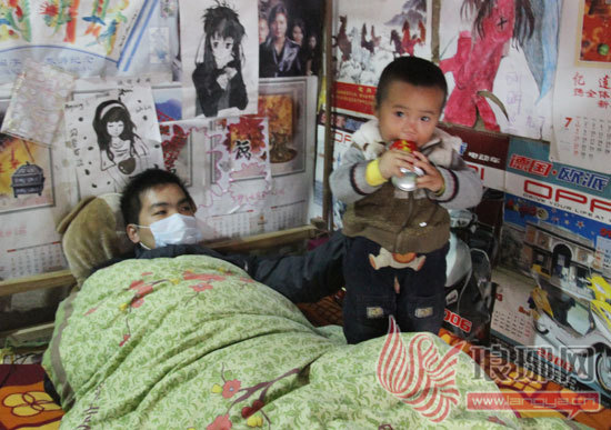9月24日,正在平邑打工的23岁小伙刘明财突然感到浑身无力,被同事送到县医院检查。“县医院的医生对我说,让我赶紧去市医院检查,还嘱咐我小心不要磕着碰着。”困惑不已的刘明财当晚即赶到市医院做检查,“市医院的医生检查后,就不让我走了,要我马上住院。”25日,最后的诊断结果出来了,是再生障碍性贫血(俗称血癌)。这个诊断结果犹如晴天霹雳,使刘明财一家难以接受。