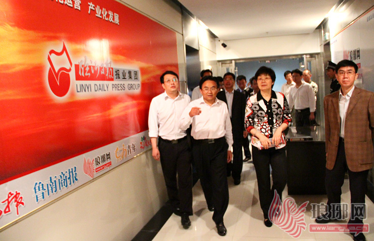 5月9日,国家新闻出版总署新闻报刊司司长王国庆(右二)参观临沂日报报业集团。 记者 何金洧 摄