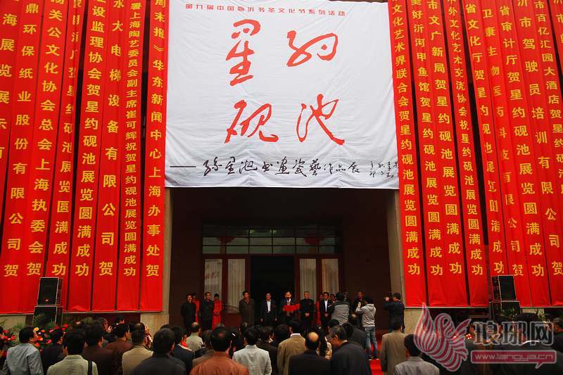 27日上午九点,第九届中国临沂书圣文化节系列活动孙星池书画瓷艺作品展,在临沂市展览馆举办。此次作品展作为临沂市书圣文化节系列活动之一,由上海中外文化艺术交流协会、临沂市文学艺术界联合会主办,由上海海上画会承办,展出更多的是反映了书画展作者孙星池先生艺术探索和风格的作品,巨幅焦墨山水画视觉力强,震撼人心。据悉,此次作品展展览时间由2011年10月27日到2011年10月29日,共计四天,共展示作品100余件,其中展品的一部分是作为孙先生乞年为止积累下来的比较满意的作品,有人物画、花卉画,尤以瓷器板书法比较生动独特。