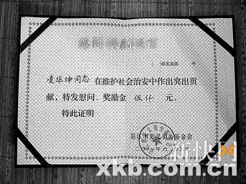 32岁的凌华坤是吴川市一名个体户,最近他因见义勇为使生活陷入困局。今年5月中旬,他驾车追击劫匪的过程中,车辆与劫匪的摩托车碰撞,其中一劫匪重伤不治身亡。而其妻儿也受伤,座驾需要大修,还伤了路人和路边车。因这次见义勇为获得的5万多元奖金,除了妻儿的医药费外,还要赔偿给被撞的路人和路边车主,最后还要倒贴4万多元。对此,有律师称应修改法规为见义勇为者解决后顾之忧,不要让见义勇为者流血又流泪。