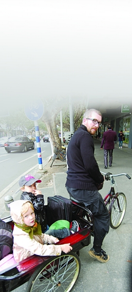 “我们是为了送女儿上学才买的三轮车和自行车,花了370块钱”,他们就住在新街口,离孩子所在的南大幼儿园不远,觉得骑车很方便。“每天早上也就20分钟吧!骑三轮车很酷啊,不仅方便而且还能锻炼身体,孩子们也很乐意坐在里面。”提到路人的“注目礼”,他的妻子马上用夸张的动作加上眼神,模仿行人们看到一个老外骑三轮的惊讶神情,“他们往往正走路,猛然发现我们,都走过去了还是会急剧扭头,‘哇’地表示各种吃惊。”