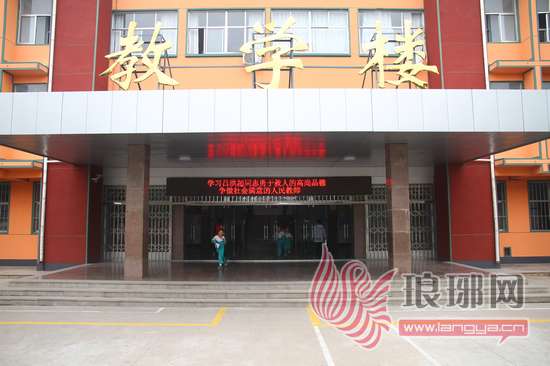 学校教学楼前电子屏滚动的字幕。