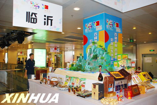 精心组织旅游商品展销活动,挑选了地矿奇石产品、土特产品、手工艺品和文化艺术品等四大系列、200余个品种,在现场设计制作了美轮美奂的“蒙山沂水”景观模型,组织开展了一系列歌舞表演活动,在整个展销大厅独树一帜,惹人瞩目。现场销售情况异常火爆,销售人员应接不暇,沂蒙煎饼、干煸肉丝、全蝎酒、银杏制品和手工艺品等供不应求,深受游客喜爱。展销当天,临沂市现场直销金额达1.2万余元,旅游商品几乎销售一空。