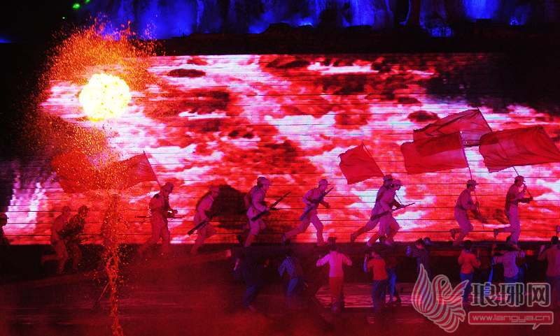 当演出进行到《热土情深》一章时,大屏幕上一架架飞机呼啸而过,舞台前的水池中炸起巨大的火焰和水花,逼真的现场效果让许多市民发出惊呼。随后灯光熄灭,一道火红信号弹划破夜空,枪声响起,解放军挥舞着军旗踏上沂蒙妇女架起的火线桥,熟悉的《沂蒙山小调》适时营造出催人泪下的气氛。演出结束后,市民庄先生告诉记者,这是他第二次来看《蒙山沂水》,与去年的演出相比,舞台效果又有了明显提升,更富有感染力和冲击力。他期待着明年可以看到更精彩的演出。