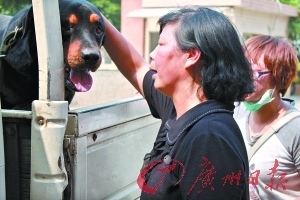 张华华望着最后被领走的名犬挪威纳 ,泪如雨下。
