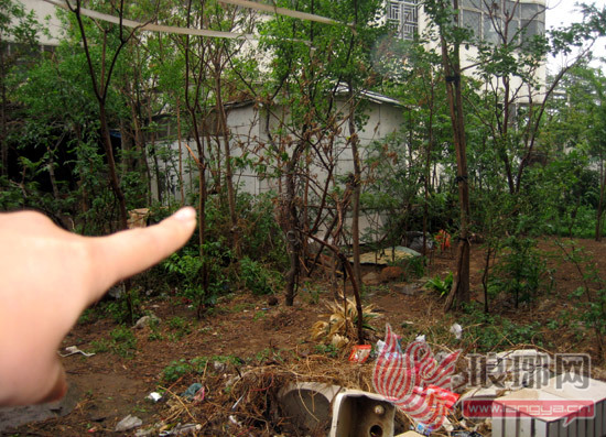 家属院里的绿化带里随处可见堆放的垃圾等杂物。