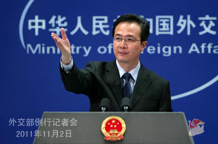 国际在线消息:据外交部网站消息,外交部发言人洪磊今日举行例行记者会,就日本首相野田佳彦称“中国军事发展和透明度令人担忧”、欧债危机等问题回答记者提问。答问实录如下: