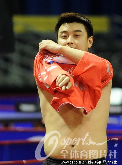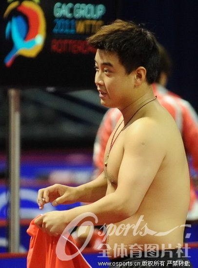 人民网5月11日电 2011年荷兰鹿特丹世界乒乓球(单项)锦标赛继续进行,刘国梁单练王皓、张继科,“肚腩哥”王皓身材依旧