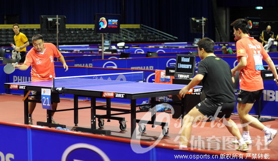 [组图]世乒赛-刘国梁单练王皓 "肚腩哥"身材依旧