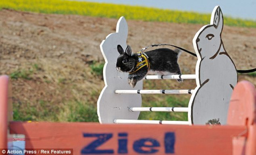 来自德国城市Jena的一只名叫“史努比”的黑白色小兔子是当地Kaninhop俱乐部的明星,每天都很勤奋地练习跳过各种栏杆。俱乐部的创始人,23岁的Claudia Fehlen说“史努比”可以跳到60厘米高。