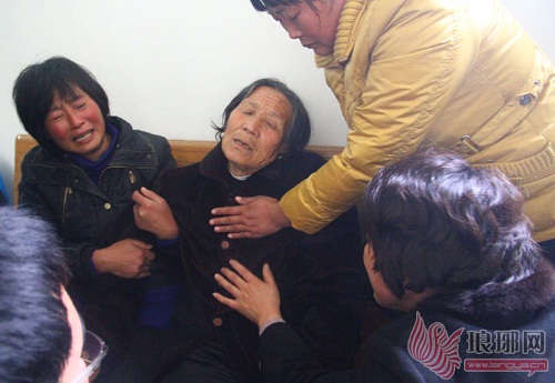 王增强的母亲伤心得几近昏迷。