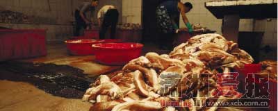 万先生告诉记者,前几天,他误入这家作坊的生产车间,眼前的一幕让他吃惊,猪肉被随意摆放在地上,不少猪肉发出腐臭的味道。“自从看到他怎么生产腊肉,我就没买过。”万先生边说边摇摇头,“他们还用药水泡劣质肉,再用硫黄熏。”