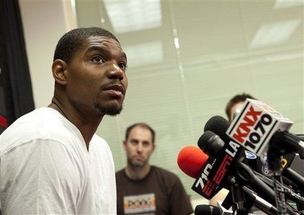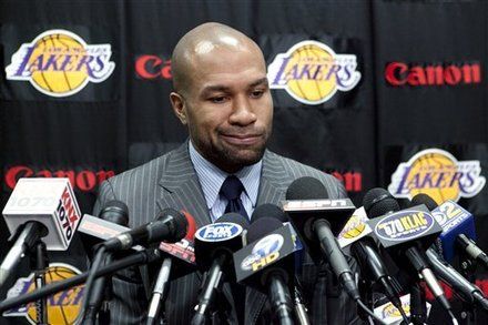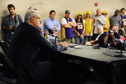 北京时间5月11日,湖人队在洛杉矶举行了赛季告别新闻发布会,菲尔杰克逊带领安德鲁-拜纳姆、罗恩-阿泰斯特,“老鱼”费舍尔,加索尔等部分湖人球员出席。
