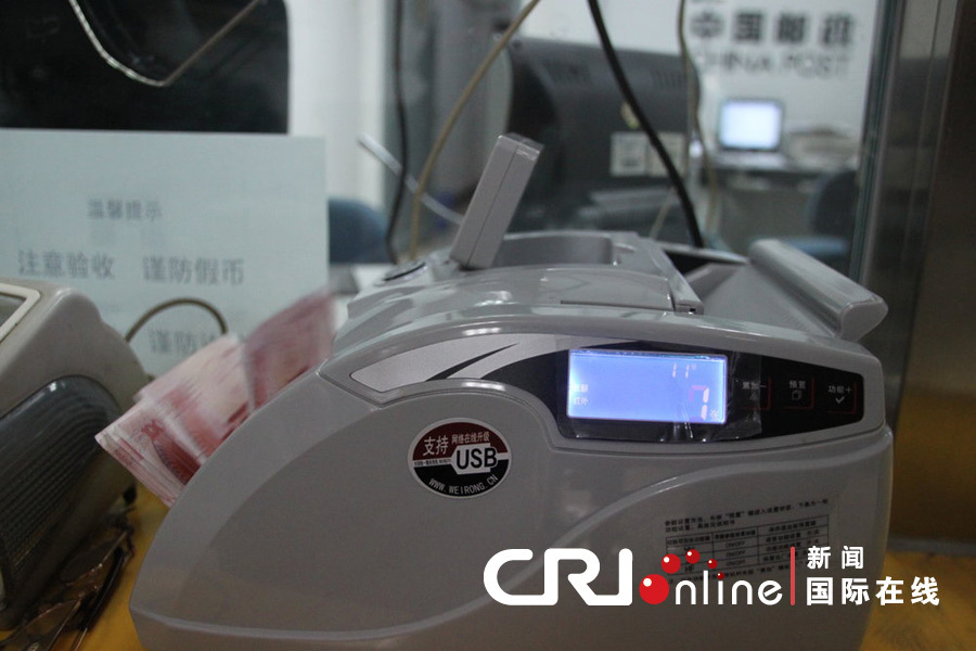 “我是通过银行的朋友,得知印钞机功能可调的,如今即使银行监控拍到钱通过了验钞机,也不能说明钱一定查验了真伪。”任淑玲表示,为了还80岁老父清白,她会坚持向邮储银行讨要说法。图为2011年11月06日,河北省石家庄市,在涉事的邮储银行石家庄市市庄支行,任淑玲将公用验钞机功能键调至“低额”后,11张假币正顺利通过检验。图片来源:CFP
