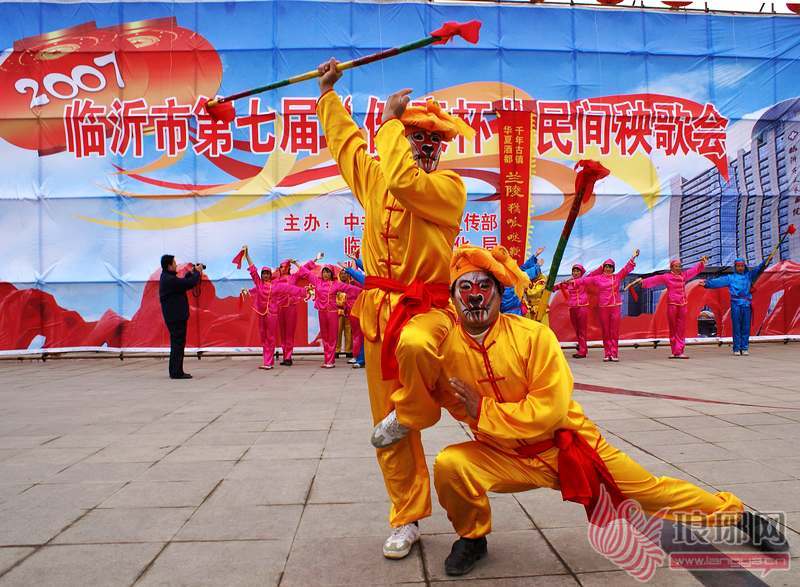 苍山县兰陵镇西横沟崖村猴呱哒舞演出剧照--刘远松拍摄。