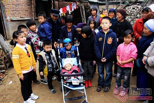 市民马先生把带来的手推婴儿车打开,把小春雨抱了进去,看到小春雨舒服的样子,众人围过来争抢着逗小春雨。“小弟弟真可爱,长得好漂亮啊!”一位随行来看望他们的小朋友摸着春雨稚嫩的小手说。