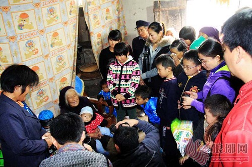 “感谢你们,感谢你们这些好心人!”当大伙将一箱箱奶粉、一件件玩具及衣服送到老人手中时,泪水充满了这位年迈老人的眼睛,老人激动而又哽咽地重复着感谢的话,或许在她内心深处,只会用简单的“感谢”两个字来表述自己的心情。这时,小天雨看见老奶奶哭了,用他稚嫩的小手为老人拭去泪水,而老人怀里搂着的春雨则静静地看着周围的一切,这个可爱的小生命天真得让人心疼。