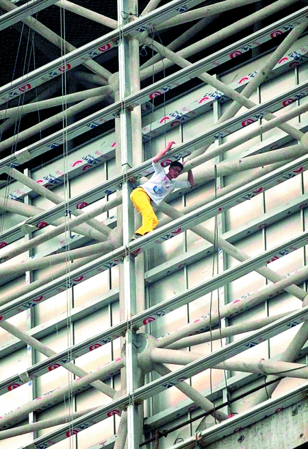 11月4日中午,网络红人“攀爬哥”张希鑫徒手爬上央视北配楼顶部,“没戴安全帽,也没其他安全措施。”