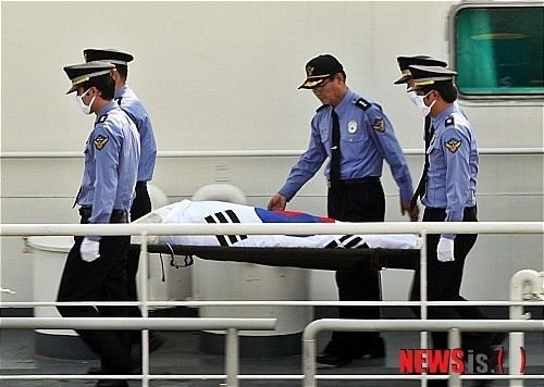 据韩国群山海警方面介绍,郑甲秀是在当地时间4日上午6时30分至7时之间坠海。当时,所有的警员都聚在1001号警戒艇的餐厅吃早餐,但并未见到郑甲秀,警方由此判断他坠落到海里。随后,群山海警及木浦海警方面都派出警戒艇及潜水员在事发海域搜寻。郑甲秀的遗体在事发3小时30分后的10点钟被找到。