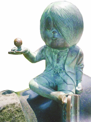 上图为日本的妖怪书籍;下图为“妖怪之乡”的鬼太郎雕像。