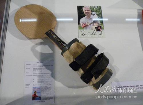 残疾人用的特殊乒乓球拍。人民网记者王继晟摄