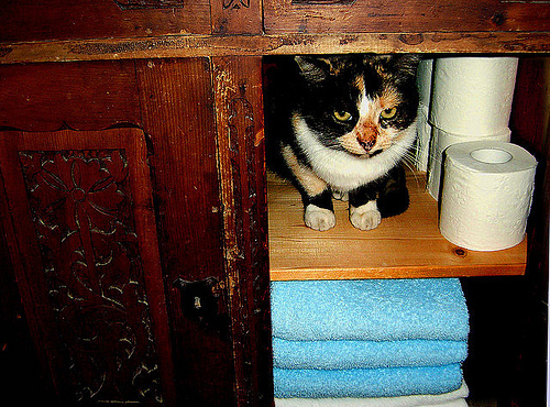 喵星人 猫这种生物确实神出鬼没好吃懒做,时常躲在一些小角落、小盒子里静静悄悄默默地注视着你,让人心中不由得产生一种被监视了的感觉(本来就是在被监视)。