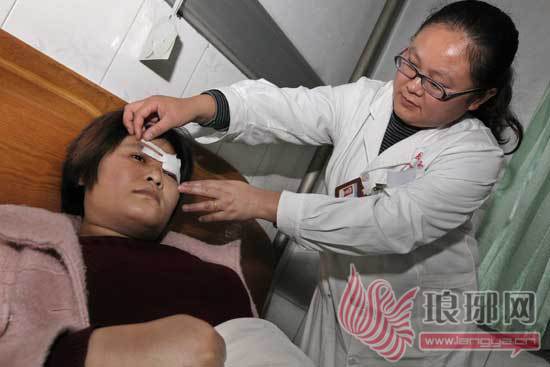 被撞伤的张女士眼部被缝了三针。