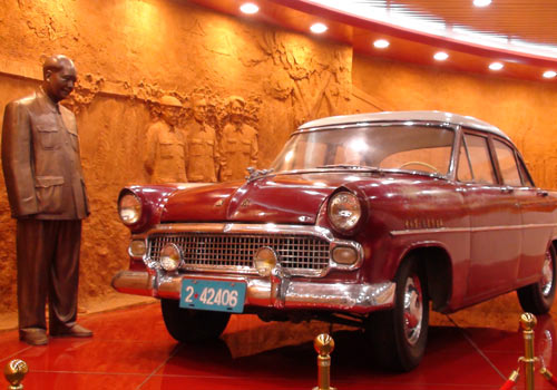 毛泽东的坐骑“吉斯115”旁边的介绍牌上称,“该车没有倒车镜,主要是因为在上世纪五六十年代意识形态要求‘社会主义不能开倒车’,同时车辆乘坐级别非常高,使用时一般都有警卫车队护驾无需倒车所致。”