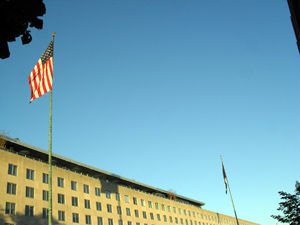 环保署对气候质量的要求很高。这是11月7日下午在国务院主楼前拍摄的照片,如此蓝天按环保署的空气质量标准,也只能算“一般”。图片来源:美国驻华使馆官方博客