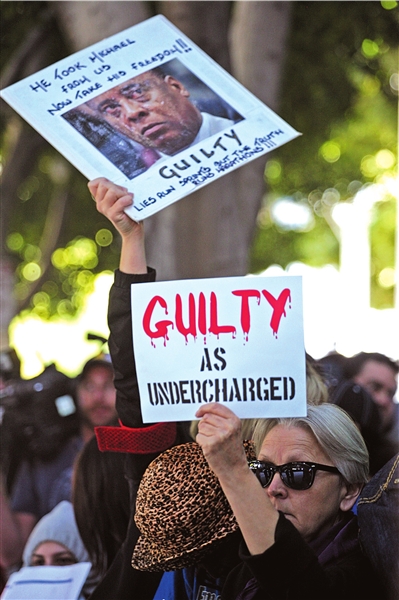 杰克逊的歌迷聚集在法院外,举标语声讨默里。新华社发
