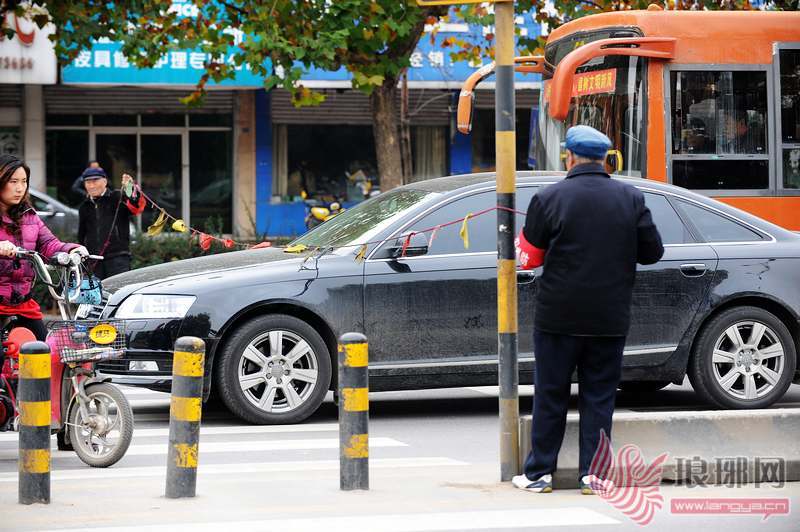 伴随着一声急刹车,一辆奥迪轿车停在了斑马线上,车头已冲过了老人们扯起的绳索,司机打开了车窗,不耐烦地按响了喇叭,但在看到老人示意停车的手势后,司机缩回了头,静静地关上了窗户,直至孩子们过完马路,绳索落下后,才启动车辆。