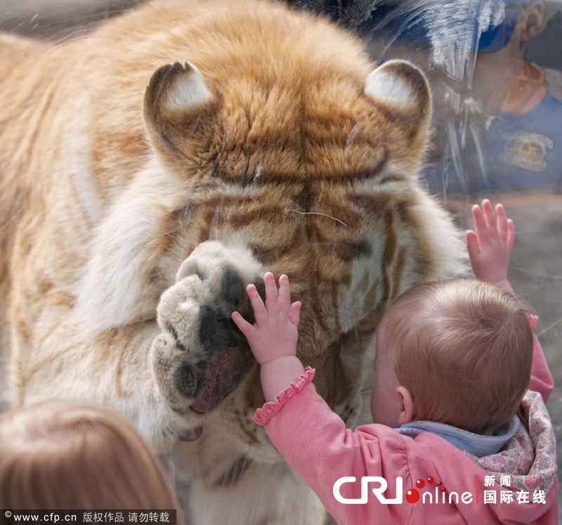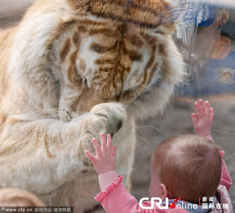 英国小女孩与老虎“击掌”玩耍(高清组图)
