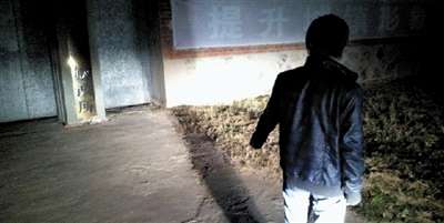 财政所门口,一名知情者在指认投放有毒食物的地点。本报记者张剑摄