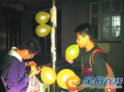 当时的气温较低,记者看到,夜色中,这两名衣着单薄的男生被冻得有些发抖。至昨日凌晨2时21分,两人终于将气球挂到了该校的江边学生宿舍一舍楼下,200只气球也刚好用完。“我们宿舍就在附近,和女友一样,都是早上6点钟起床,然后6点半出发去教学楼上早自习。走路的话,一般要15分钟才能到。”这名于姓同学说。