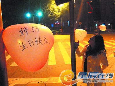 “好冷的,希望她明天早上去上课的路上能看到这些气球……”昨日凌晨2时21分,河西某大学化学化工学院的一名大一男生在同学的协助下,将写有“妍妍 生日快乐”的气球挂满了从其女友所在的女生宿舍至教学楼所经过的路边电杆和树。在这段长达1.1公里的路上,共有200只气球。对此,路人和大学生看法不一,心理专家表示,恋爱中的大学生应当正确对待学业和恋爱的关系。